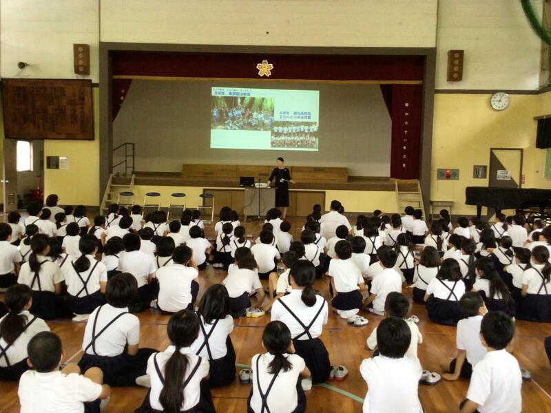 5年生は、1泊2日の集団宿泊教室で菊池少年自然の家に行きました。山登りをしたり川でニジマスつかみをしたり、アスレチックで遊んだり草そりをしたりナイトゲームをしたり等々、たくさんの活動を通して集団行動や仲間と協力することの大切さを学びました。