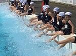 6月21日(金)5校時に、城北高校の生徒さん15名に来ていただき、5、6年生の水泳指導のお手伝いをしていただきました。子どもたちは、生徒さんからクロールの手の動かし方やバタ足の仕方等、ていねいに教えていただき、大喜びでした。7月11日(木)には、3,4年生の授業に参加していただく予定です。