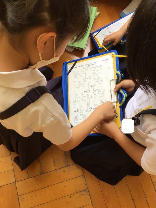 2年生が1年生を案内して校内学校探検に出かけました。班ごとにいろいろな教室を見て回りながら、2年生が分かりやすく説明しました。優しく案内する2年生が頼もしかったです。1年生もとてもうれしそうでした。