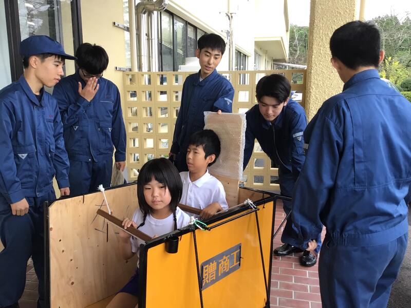 10月3日(木)に鹿本商工の生徒さんが八幡小に来られて、手作りリヤカーを寄贈してくださいました。これは高校の授業の一環で制作されたもので、山鹿市内のいくつかの学校施設に寄贈されているそうです。